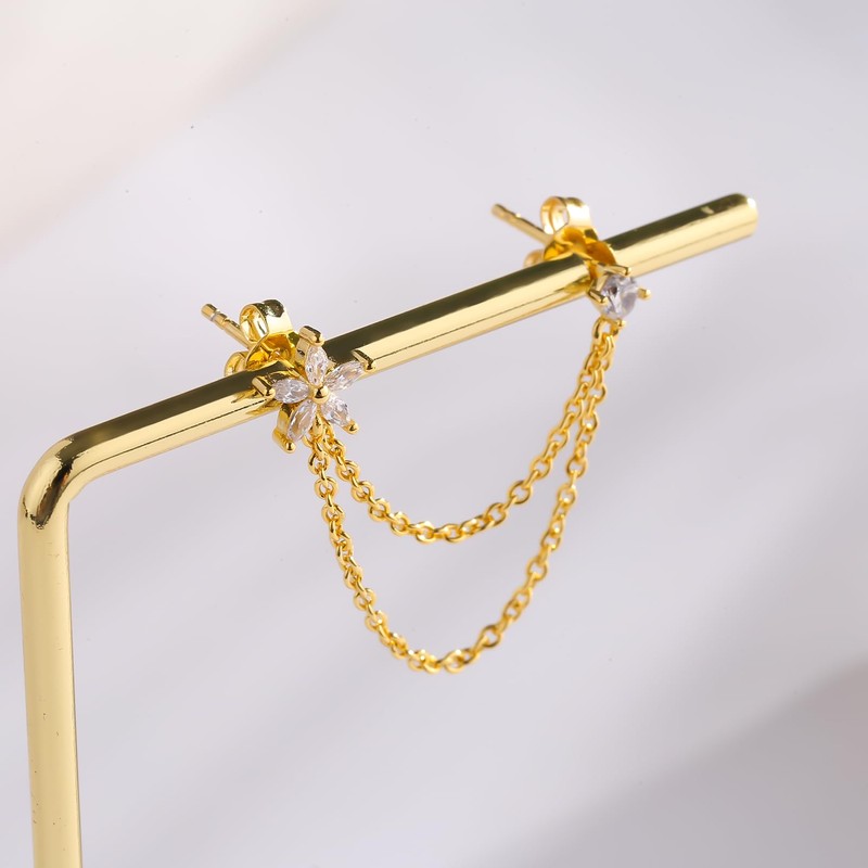 - Chain earrings double piercing,Simple style design is often the most feminine gold earrings,adding a chic touch to your everyday outfit.