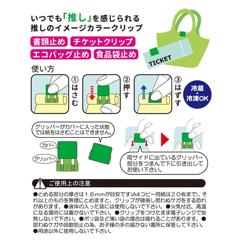 - A clip that can be used for document storage, ticket organization, eco bag stoppers, food bag stoppers, and more
