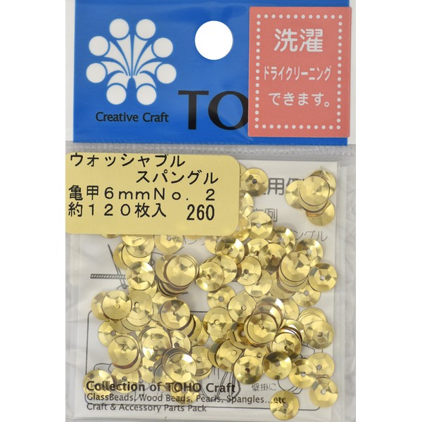 TOHO ウォッシャブルスパングル 亀甲 約6mm No.2 ゴールド 約120枚入り