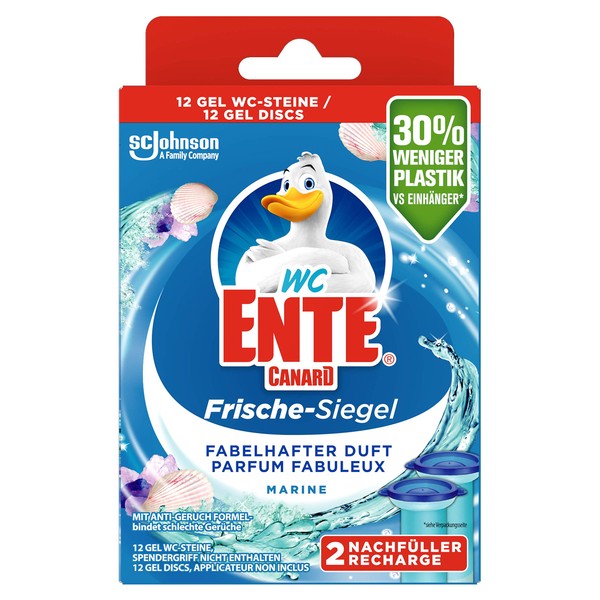 - WC-Ente Fresh seal refill for the original dispenser handle, 12 self-adhesive gel stamps for the toilet bowl, for long-lasting toilet freshness and cleanliness after each rinse