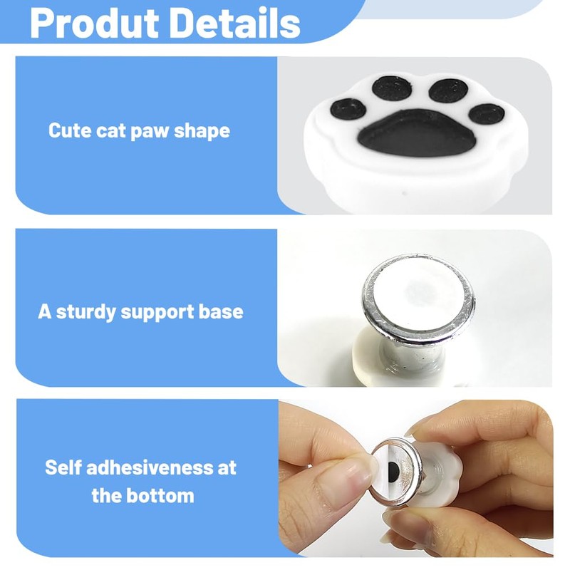 Toilet Flush Button Stickers for Easily Push, 4 pcs Cute Black White Cat Paw Flush Button for Toilet Seat Cabinet Doors Drawers