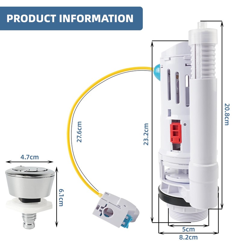 - Dual Flush suitable for 2" outlet and come with 27.6cm cable, 4.7cm button diameter, offering versatile compatibility with most standard toilet systems.