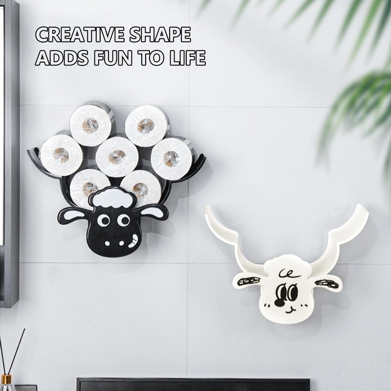 Toilet Paper Holder Sheep Toilet Paper Holder, Stackable Toilet Paper Holder, Wall Mounted with Storage Bathroom Toilet Paper Holder for Apartment, Bathroom, Kitchen Toilet Paper Holder (White)