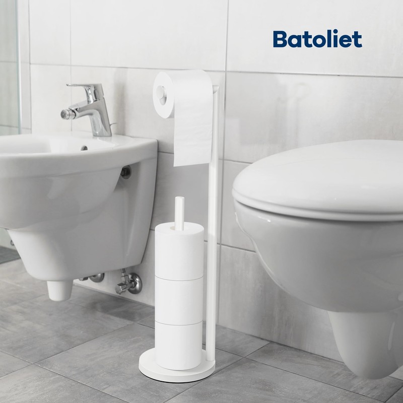- Elegant design:White Toilet paper stand for any bathroom and restroom. Dimension: 24.8 x 6.6x 5 Inch.