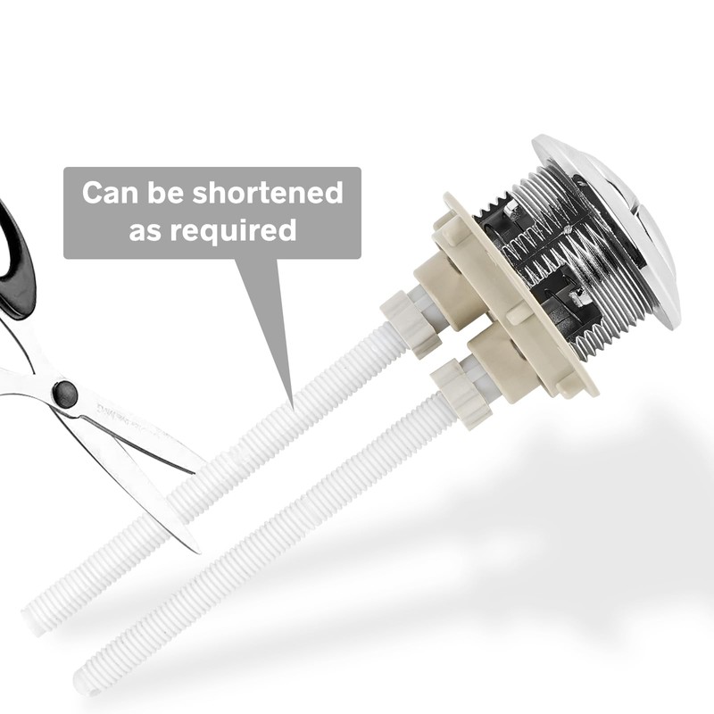 - Ease to Use: Installation of the dual push toilet button is quick and easy, taking only a few minutes. The rods can be cut to the desired length to fit the height of the water tank.