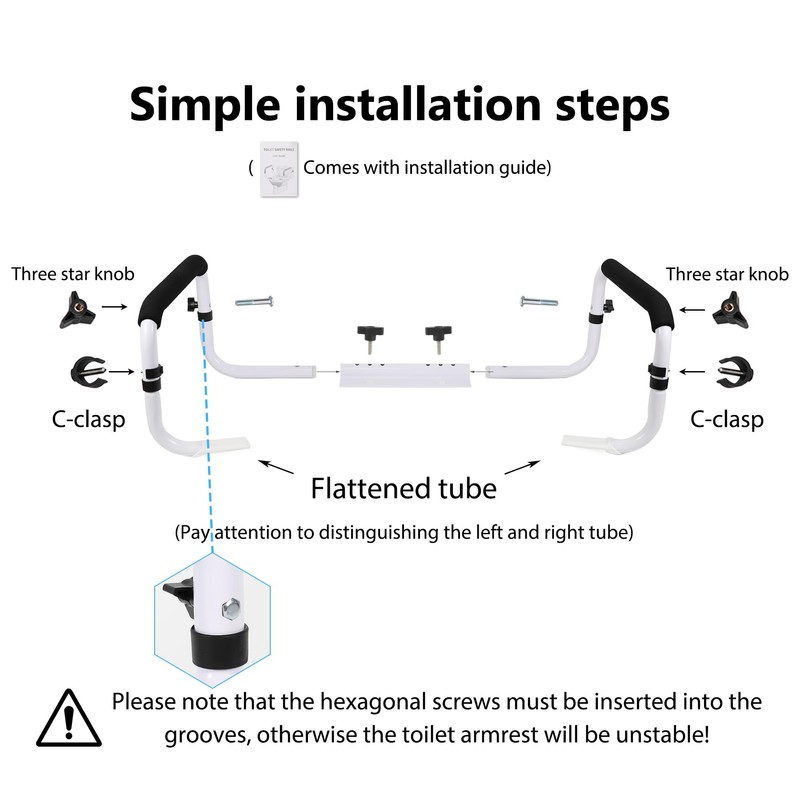 - Hassle-Free Setup, No Tools - Quick to assemble toilet rails using existing seat bolts—no drilling or cement needed. Toilet seat handle is a practical solution for temporary recovery or long-term safety without any damage to your toilet.
