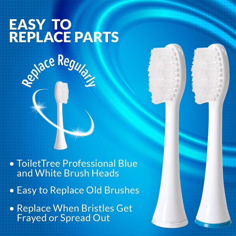 - EASY TO REPLACE PARTS - Simply replace old brushes with new ToiletTree professional blue and white brush heads each time the bristles get frayed or spread out