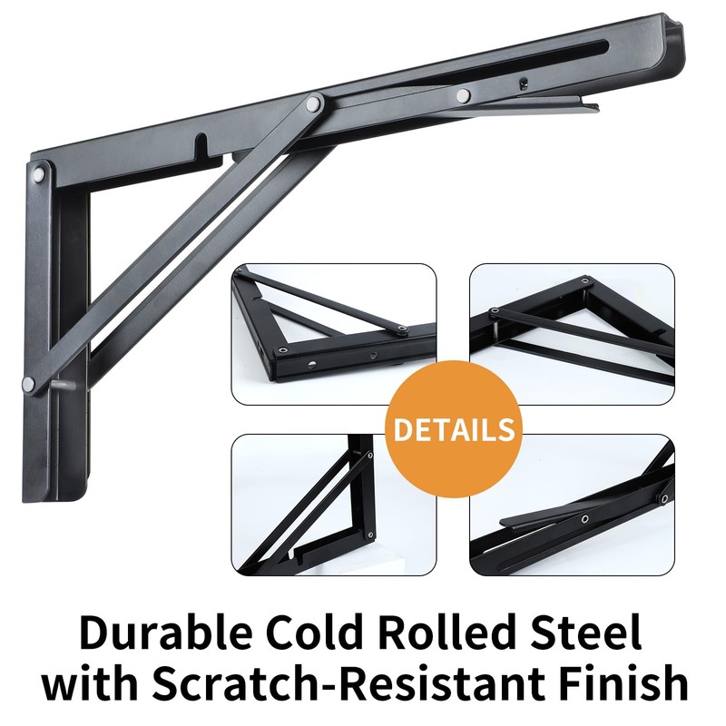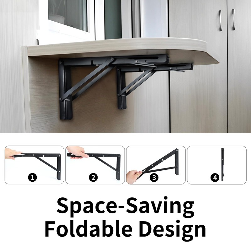 Toirxarn 24" Heavy Duty Black Folding Shelf Brackets - Steel Collapsible Bracket for Space Saving Wall Mounted Desk, DIY Workbench, Foldable Table & Countertop Extension, Max Load 330lb, Pack of 2
