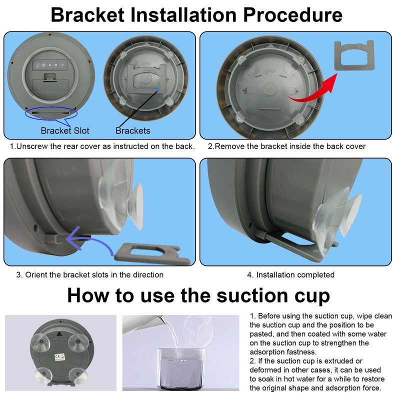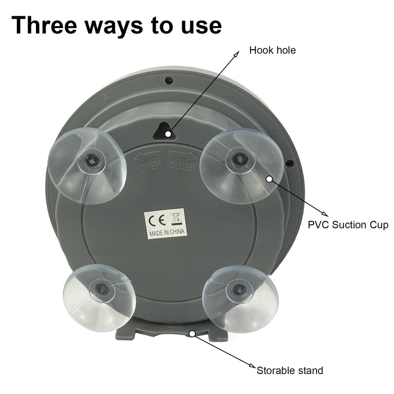 - 【Hanging & Laying】 This shower clock comes with four suction cups on the back, suitable for different occasions, such as bathroom glass, glossy tiles and other smooth surfaces. The bottom is equipped with a storable stand, which can be placed on a table, shelf, etc. You can choose the right and convenient way to place it according to your preference.
