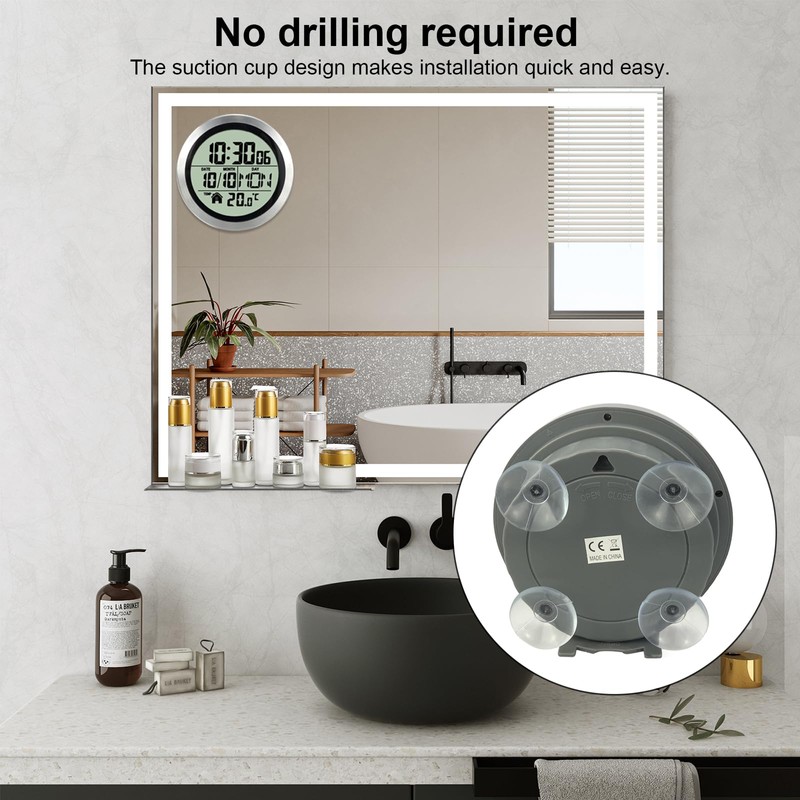 - 【Widely Application】A perfect for everyone. Thoughtful suction cup design and storable stand design, splash-proof and waterproof air-proof and drip-proof, suitable for bedroom, bathroom, living room, kitchen and so on. You could put it on table, desk, end table and bookshelf.It's also great for gift. It would be very happy to receive this shower clock as a gift.