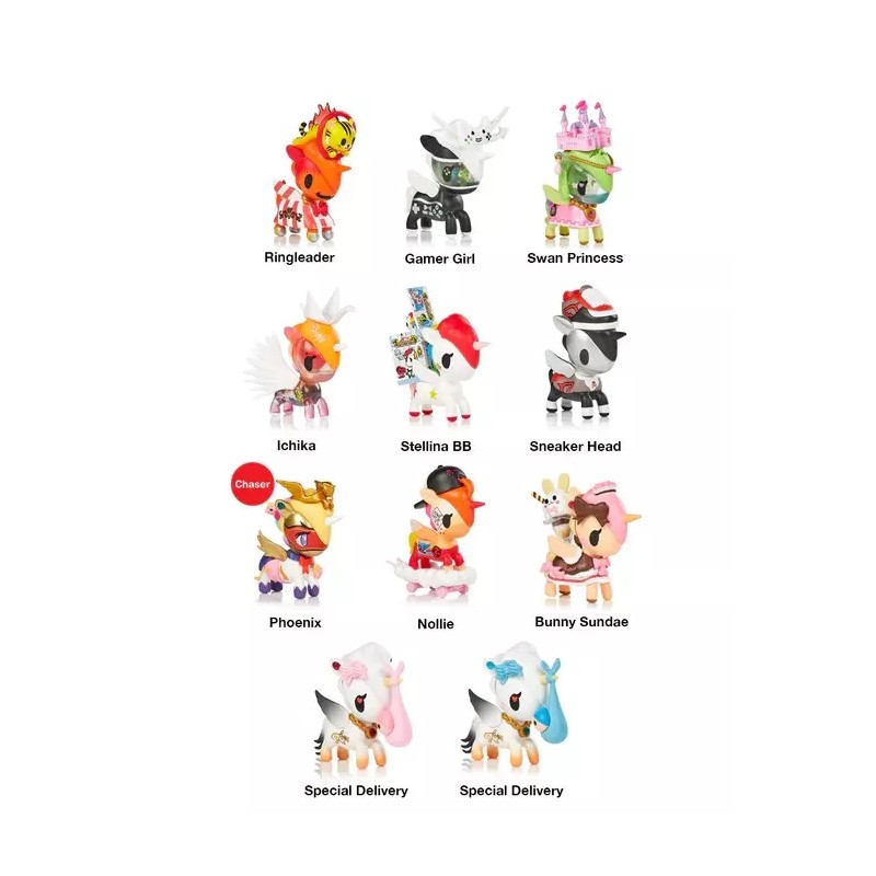 - Characters include: Gamer Girl, Swan Princess, Ringleader, Nollie, Stellina BB, Ichika, Sneaker Head, Bunny Sundae, Phoenix (chaser!) and Special Delivery (will you get pink or blue?!)