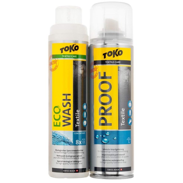 - Box contents: 2 x 250 ml (1 x 250 ml TOKO Textil Proof and 1 x 250 ml TOKO Eco Textile Wash)