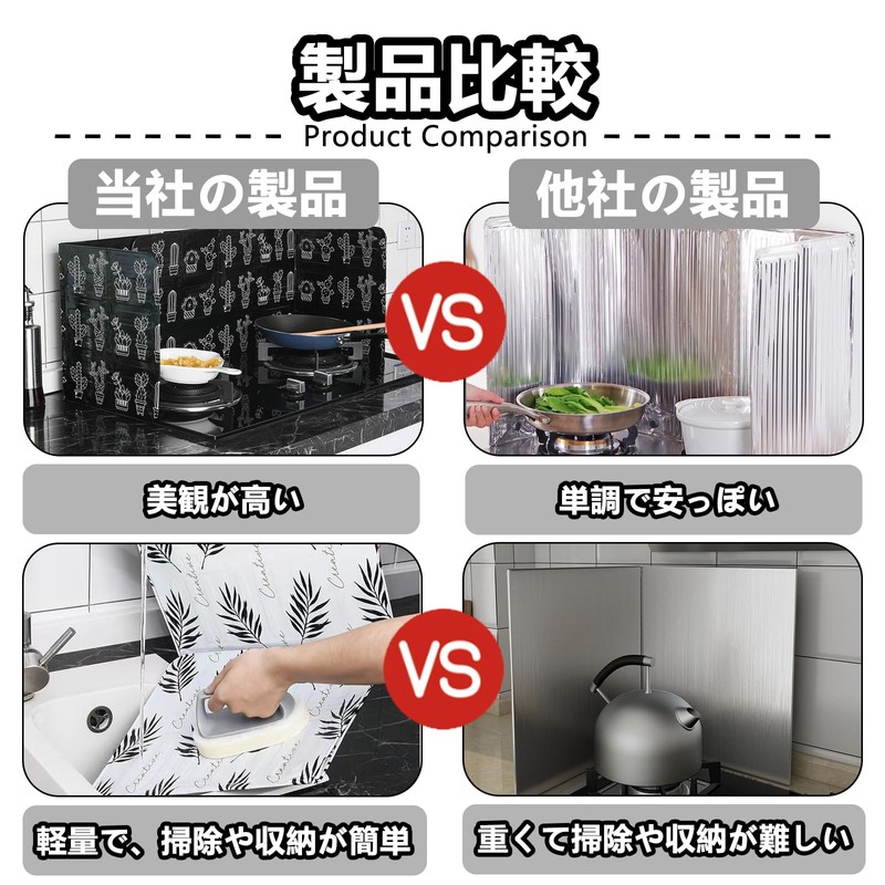 2. Easy to clean with both induction and gas: Versatile splash guard for both induction and gas stoves. The surface is smooth, scratch and stain resistant, so it is easy to clean by wiping with a cloth or washing with water. No need to worry about greasy stains.