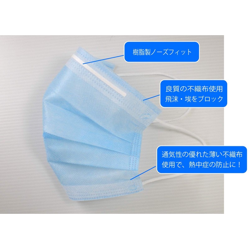 Tokunaga Electric Double Layer Non-Woven Mask Disposable Mask Made in Nagano Prefecture (Blue 50 Sheets)