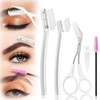 Tokusatsu Tokusatsu Eyebrow Kit, Trimming and Shaping Brow Set with Eyebrow Scissors with comb, Eyebrow Razor, Spoolie Brush and Cleaning Brush, Eyebrow Trimmer Scissors for Women/Men, White