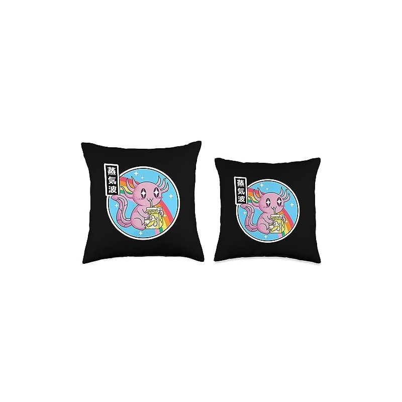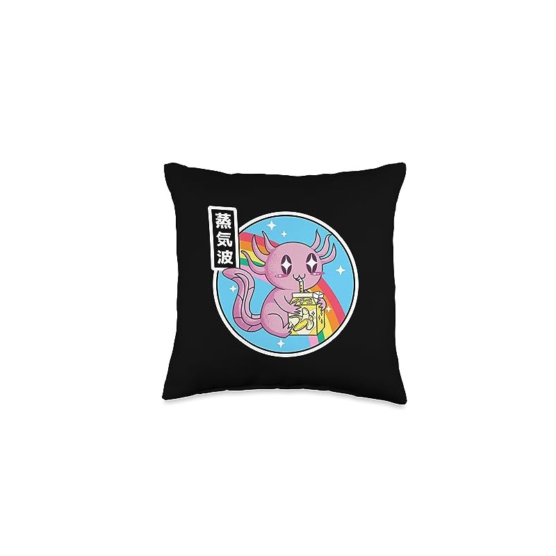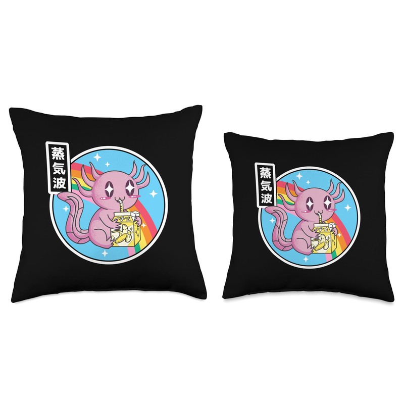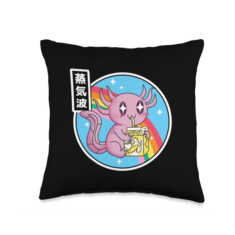 TOKYO WAVES Axolotl Banana Milk Carton Kawaii Retro Rainbow Anime Throw Pillow, 16x16, Multicolor