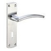 Toledo Door Handle Lever Lock on Backplate in Satin Chrome