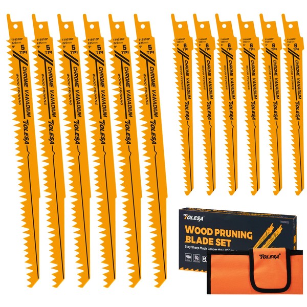 - 【切れ味鋭い】当レシプロソー替刃セットは、150㎜の6山替刃は6本入り、225㎜の5山替刃は6本入りです。150㎜の替刃はより高い強靭性が持ち、積極的な切断に適しています。225㎜の替刃の柔軟性がより高く、有効長さがより長いです。枝切りなどのフラッシュカットに適しています。