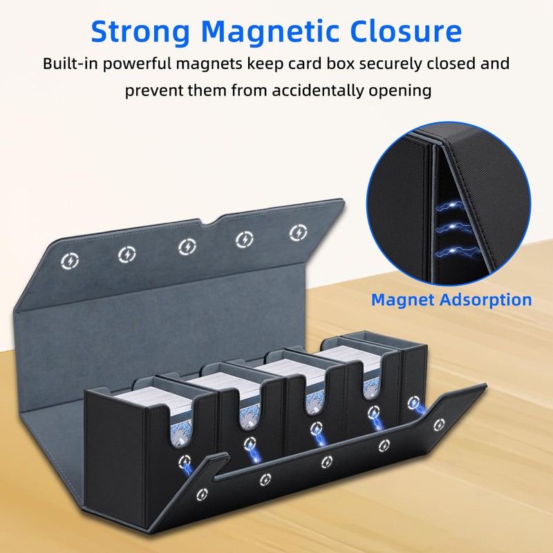 Tolesum 5-in-1 Card Deck Box for MTG, Gathering Card Box for 800+ Unlined Cards with Cube Tray, PU Leather Strong Magnetic Trading Card Box Compatible Magic Commander TCG Cards Black