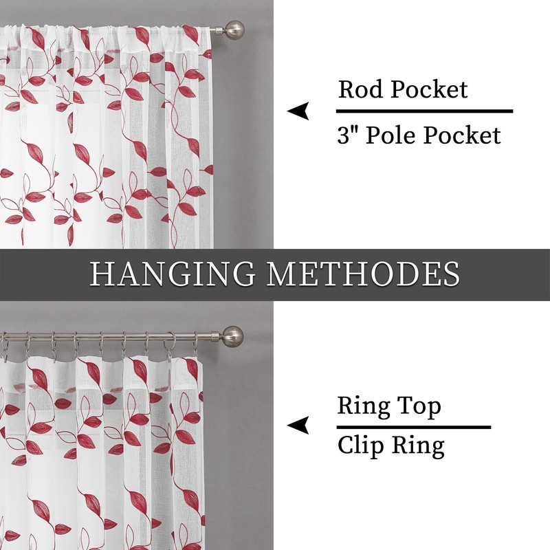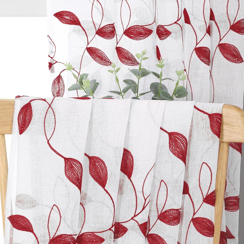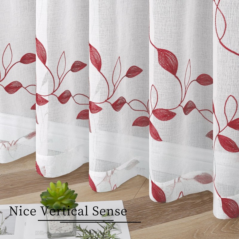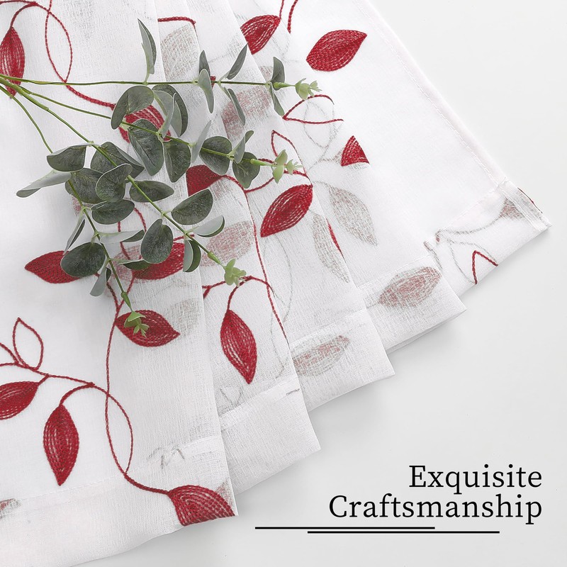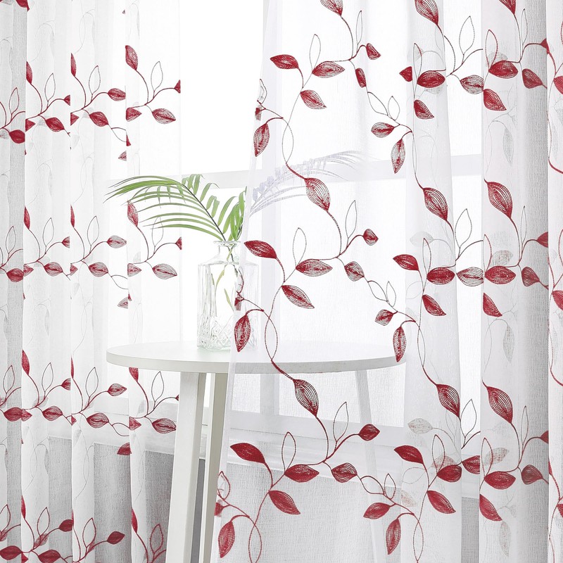 - Leaves Embroidery: Burgundy red embroidered leaves pattern on the white sheer curtains creates a unique refreshing sense, which will take you closer to real nature and give your room a different rural beauty.
