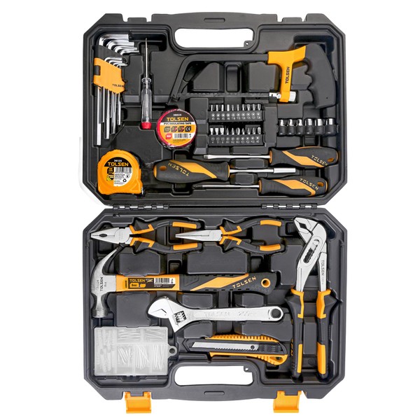 TOLSEN Tool Set Household Hand Tool Kit, General Repair with Drill Bits, Socket Wrench Set, Hex Key Set with Plastic Toolbox Storage Case-119 Piece