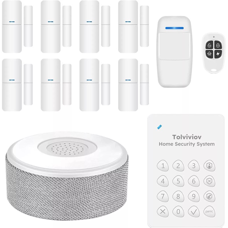 - ✅BUY with Confidence - The wifi alarm system comes with a base station, 1remote, 1 keypad, 1 motion sensor, 8 contact sensors. tolviviov home alarm system can be used not only for your house or apartment, but also for offices, garage, shops, stores, condos. etc.