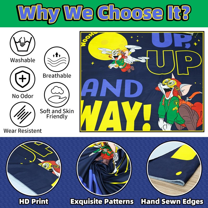 - 🎨Tom and Jerry Photography Backdrop Banner: Dive into cartoon with our photo tapestry props! Featuring ultra-high-resolution prints of cat, mouse, and their iconic moon adventure, this party decor doubles as a picnic blanket for outdoor fun. Crafted from lightweight, soft and safe fiber, it’s perfect for kids' birthday parties, baby showers, or impromptu backyard adventures.