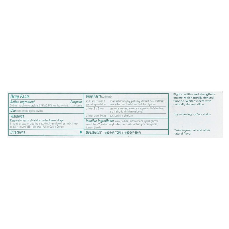- STRENGTHENS TEETH: Tom's of Maine Fluoride Toothpaste promotes remineralization to strengthen enamel