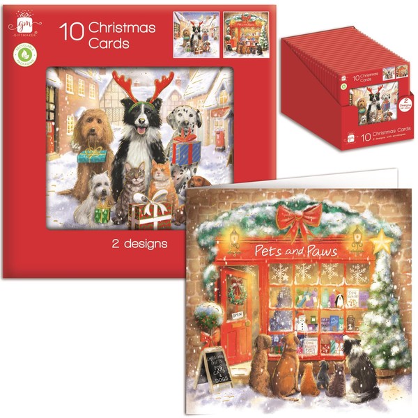 Tom Smith Giftmaker Pack 10 Square Christmas Cards 2 Festive Pets & Paws Designs 14cm