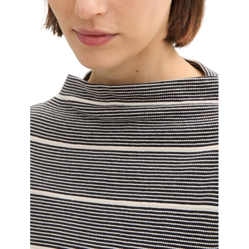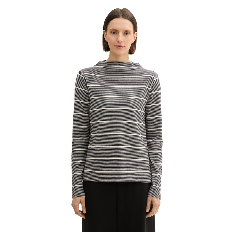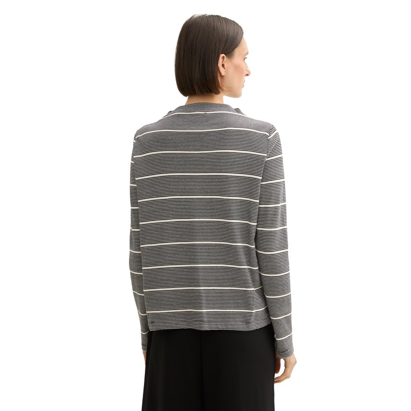 TOM TAILOR Women's Long-Sleeved T-Shirt, 36648 - Black White Irregular Stripe, M