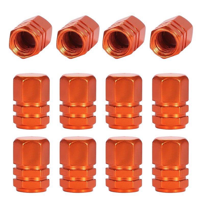 TOMALL 12 Pack Stem Valve Caps Hexagon Shape Aluminum Alloy Tire Valve Stem Caps Cover Compatible with Auto Car Universal (Orange)