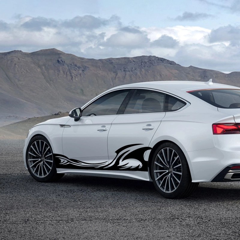 TOMALL 2Pcs 82'' Wave Flame Graphics Car Body Side Stickers Flame Racing Spor...