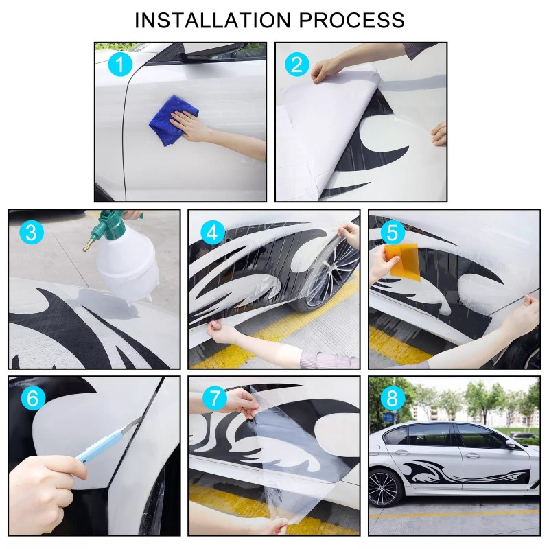 - How to Install - First wipe off the dust on the car, after tearing off the bottom paper, spray water on the adhesive side of the sticker, stick the sticker on the car, lift it from one corner, and scrape off the excess water and air bubbles with a scraper until it is completely bonded. (See description or video).