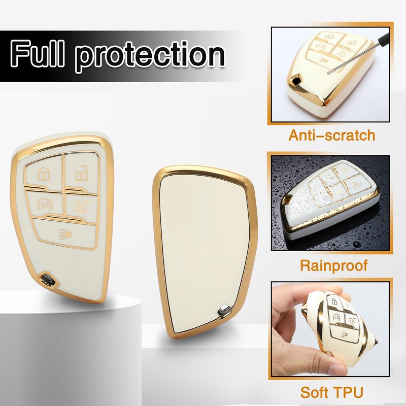 TOMALL for Chevy Key Fob Cover with Keychain 5 Buttons Soft TPU Key Fob Protector Compatible with 2021 2022 2023 2024 Chevy GMC Silverado 1500 2500HD 3500HD Sierra 1500, White