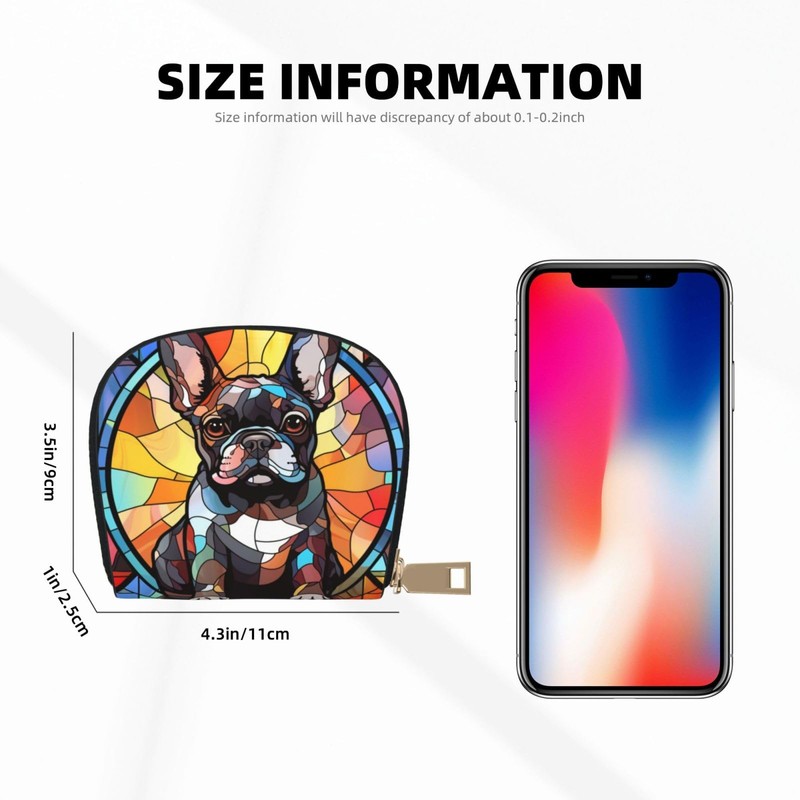 TOMASLINK Dog Credit Card Holder Wallets For Women, Small Damn Funny Dog Print Card Case Wallet With Zipper, Pu Leather Card Holder Wallet For Ladies Girls Boys Kids, Boston Terrier-CHC, Stained Glass