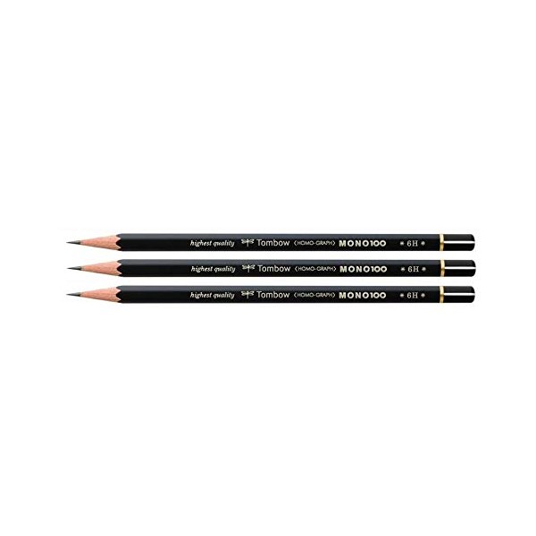 Tombow Pack of 3 High Quality Graphite Pencils Mono 100 6H