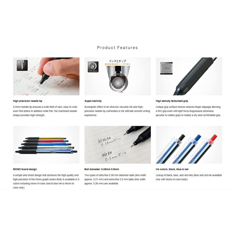 From the popular Mono graph, an ultra-low viscosity lubricating oil-based ballpoint pen that is incredibly smooth to write. - Ink color: Black.