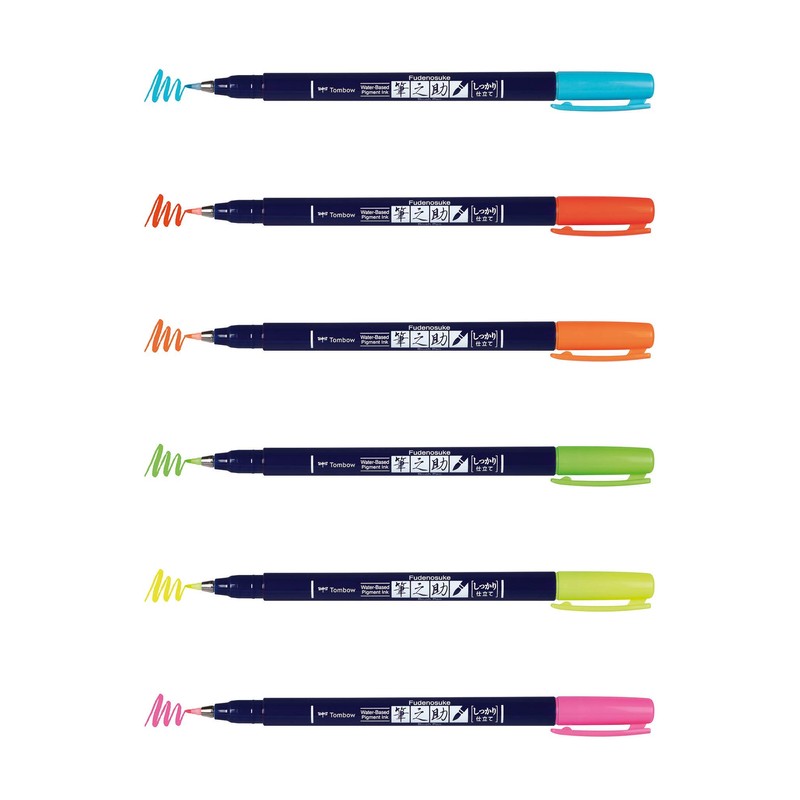 Tombow ws-BH90 Brush Pen Fudenosuke Neon Pink, Hard Tip