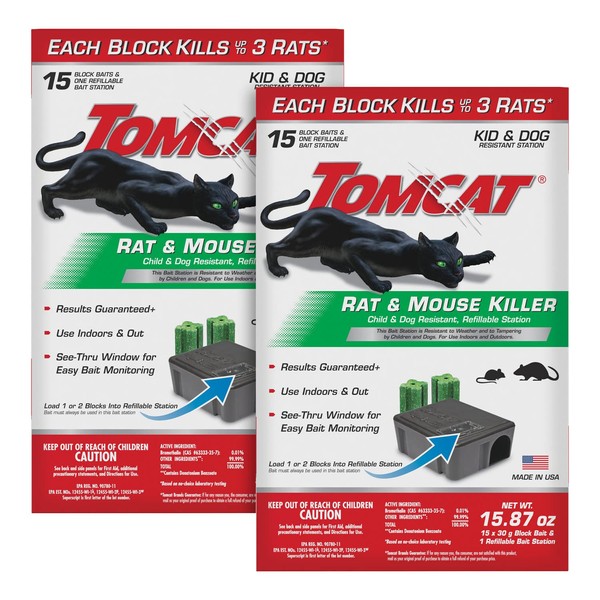Tomcat Rat and Mouse Killer Child and Dog Resistant, Refillable Station, 2-Pack (2 Bait Stations Plus 30 Refills)