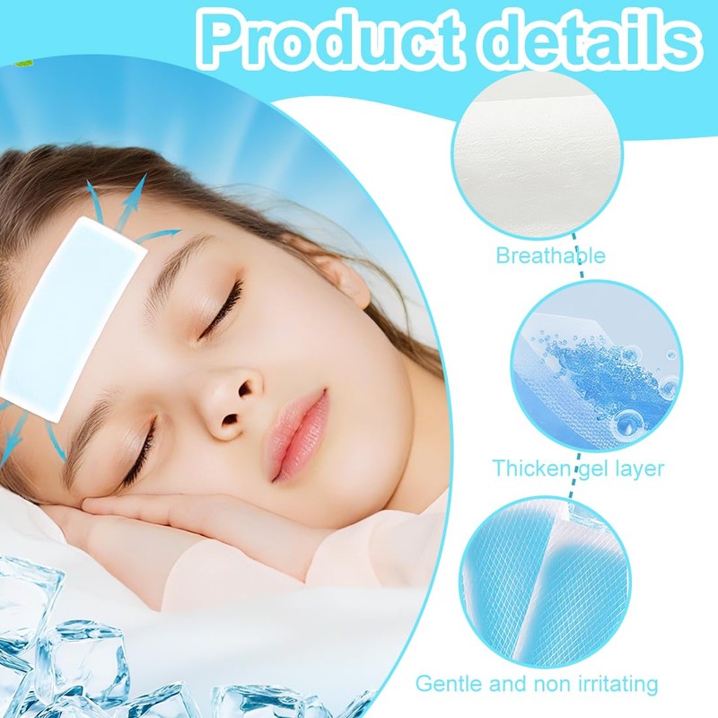 Material: Our cooling patches use advanced hydrogel technology to provide targeted relief from fever and headaches, are chemical-free and non-irritating