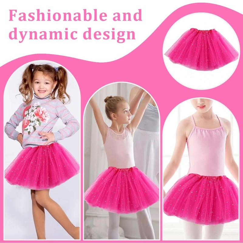 Tomedeks Sparkle Tutu Skirt,3 Layered Tulle Sequin Star Skirts,Pink Tutu Skirt,Tutu Skirts for Girls for Girls Toddler 2-8,Layered Tulle Dance Skirts for Kids Girls Dance Birthday Princess Party