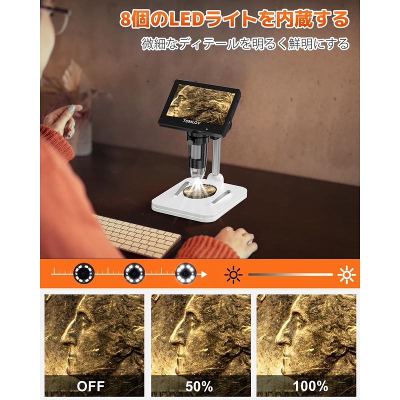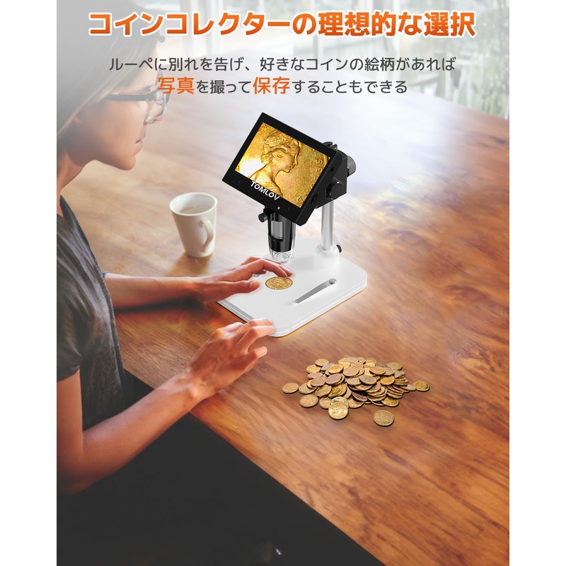TOMLOV Digital Microscope, Coin Microscope, Digital Microscope, Adjustable, D...