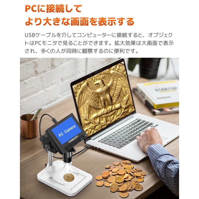 TOMLOV Digital Microscope, Coin Microscope, Digital Microscope, Adjustable, Digital Microscope, Digital, PC Connectable, Compatible with Windows, USB Microscope, Biological Observation, Free Research, Biology Education, Circuit Board Repair, Electronic M