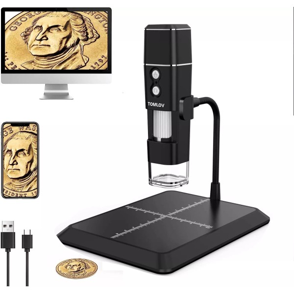 TOMLOV DM1 WiFi Wireless 1000X Digital Microscope Camera Coin Microscope Video