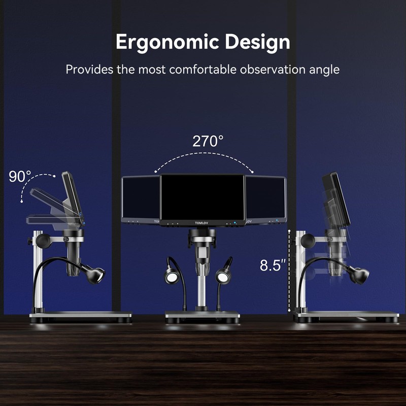 - 7 Inch Rotatable FHD Screen - Working together with 12 megapixels ultra precise focusing camera and 1080P high definition imaging, this LCD digital microscope creates high quality images and videos and brings incredible micro world observing experience. The rotatable(90 degrees) screen design improves ergonomics and eliminates eye and neck strain.