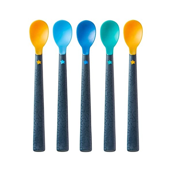 Tommee Tippee 44719610 Soft Tea Spoon with Long Non-Slip Handle, Extra Soft, from 4 Months, Pack of 5, Multi-Coloured