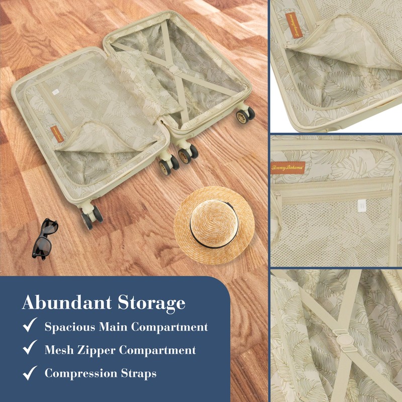 Tommy Bahama 26.5 Inches Rolling Luggage, Hard-Sided Suitcases with Spinner Wheels, Cream