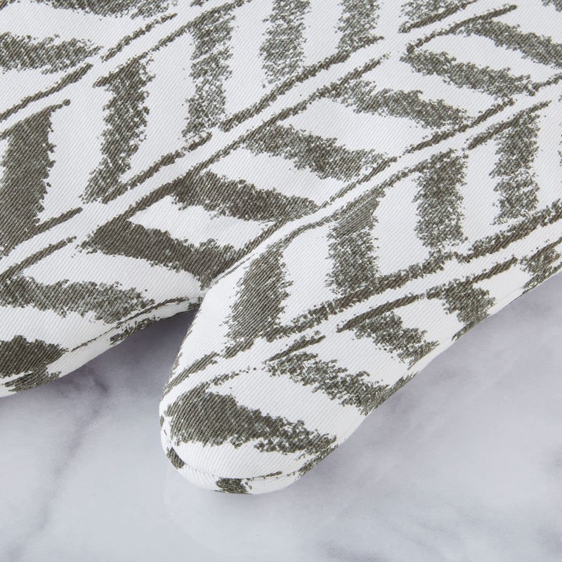 - DIAMOND QUILTED: The exterior layer of each oven mitt showcases a diamond quilt design with a leaf herringbone print in gray and white that will add a stylish accent to your kitchen decor.