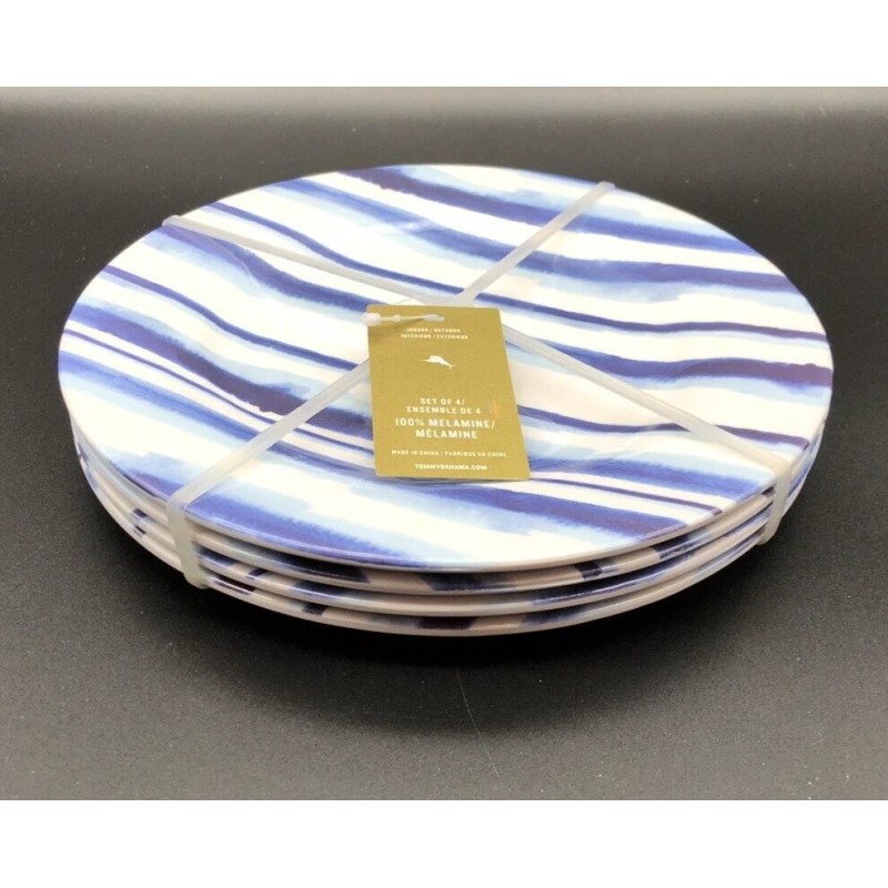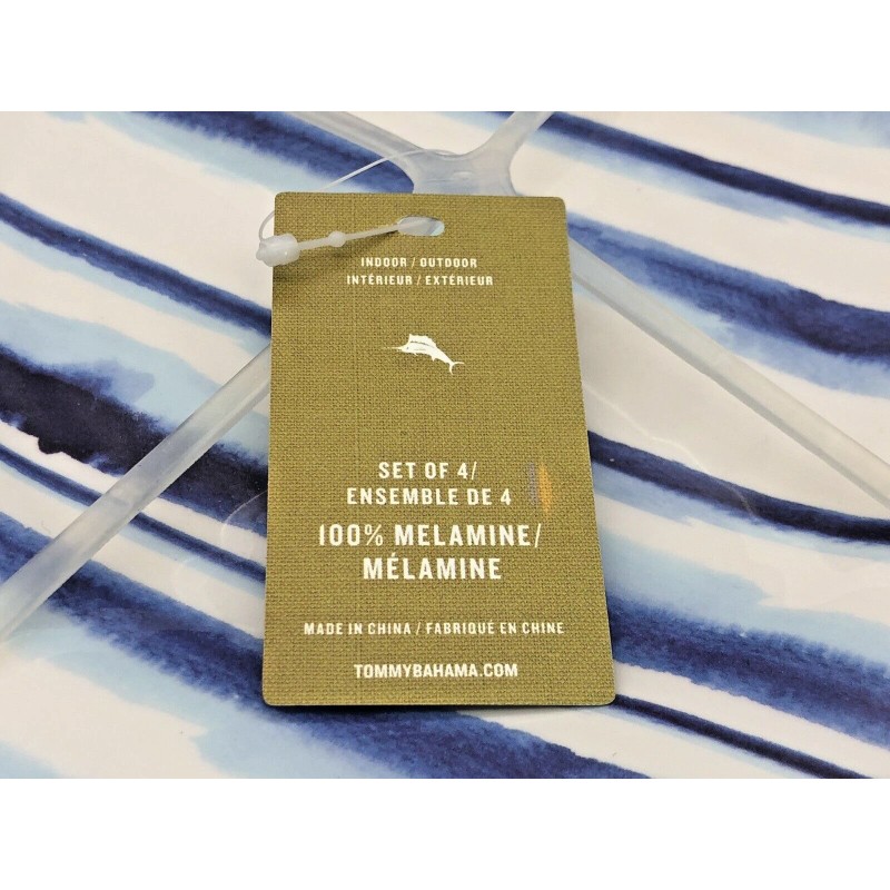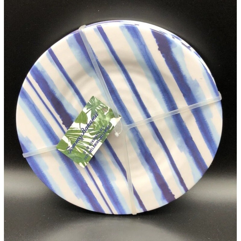 TOMMY BAHAMA MELAMINE Salad Plate 8.5" Blue Sky White Stripes NEW (Set of 4)
