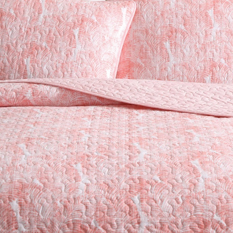 Tommy Bahama - Quilt Set, Super Soft Bedding with Matching Shams, Vibrant Coral Fern Design with Reversible Texture, Premium Home Essentials (Distressed Water Leaves Coral, King)